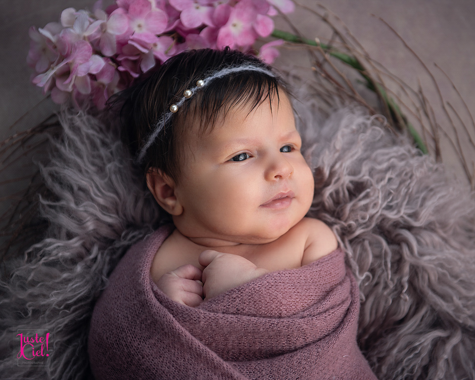 Une séance toute féminine pour la douce Sophie! Des teintes qui complémentent la peau et des accessoires qui mettent en valeur son abondante chevelure. Maman avait prévu un tutu, je peux toujours inclure des items de votre choix si vous le souhaitez!